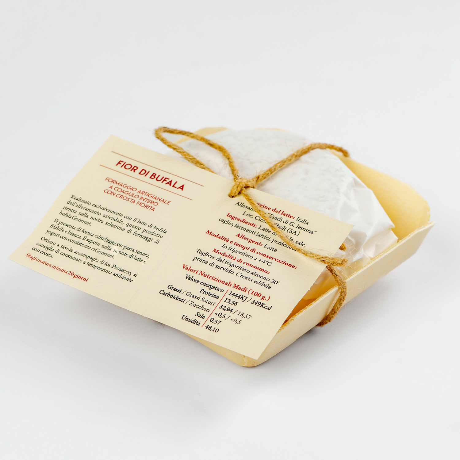 Ingredienti: Latte di bufala, sale, caglio, fermenti lattici, pennicillium c.